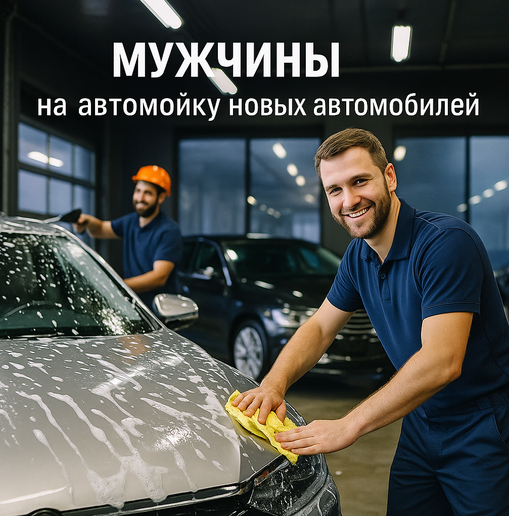 Требуются мужчины на автомойку новых автомобилей, поступающих из порта.