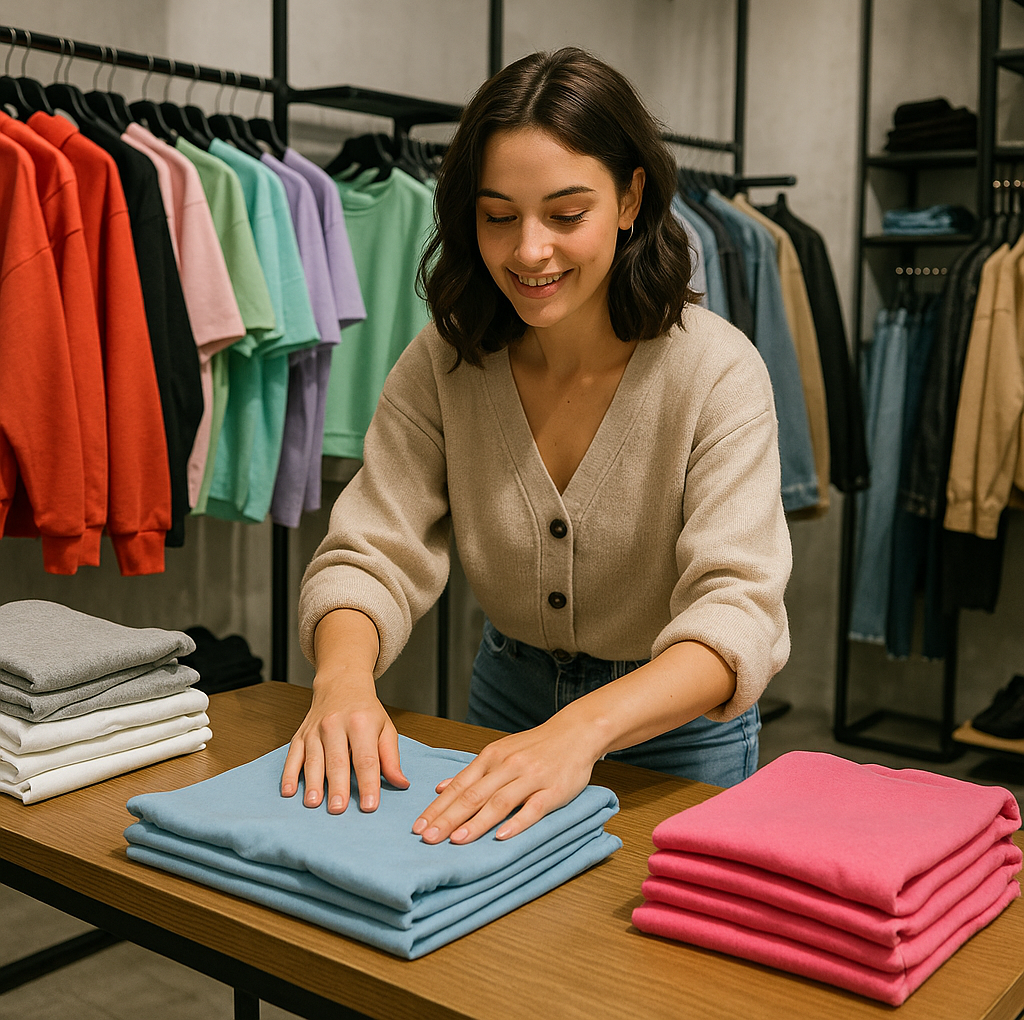 Раскладка одежды в магазине.
