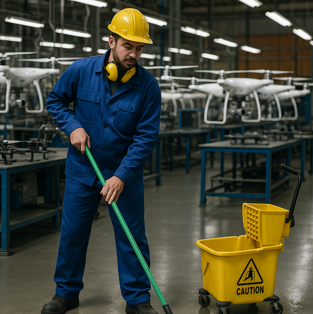 🏭 Завод по сборке дронов приглашает мужчин на уборку.