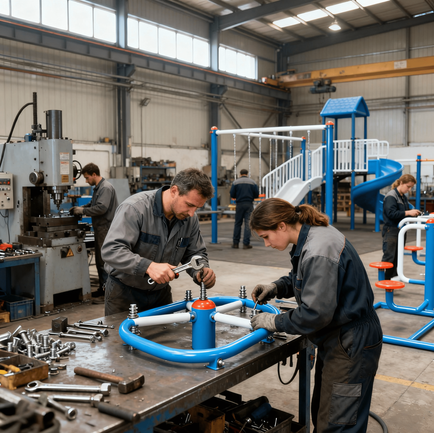 В цех по производству детских площадок требуются мужчины и женщины для изготовления и сборки изделий.