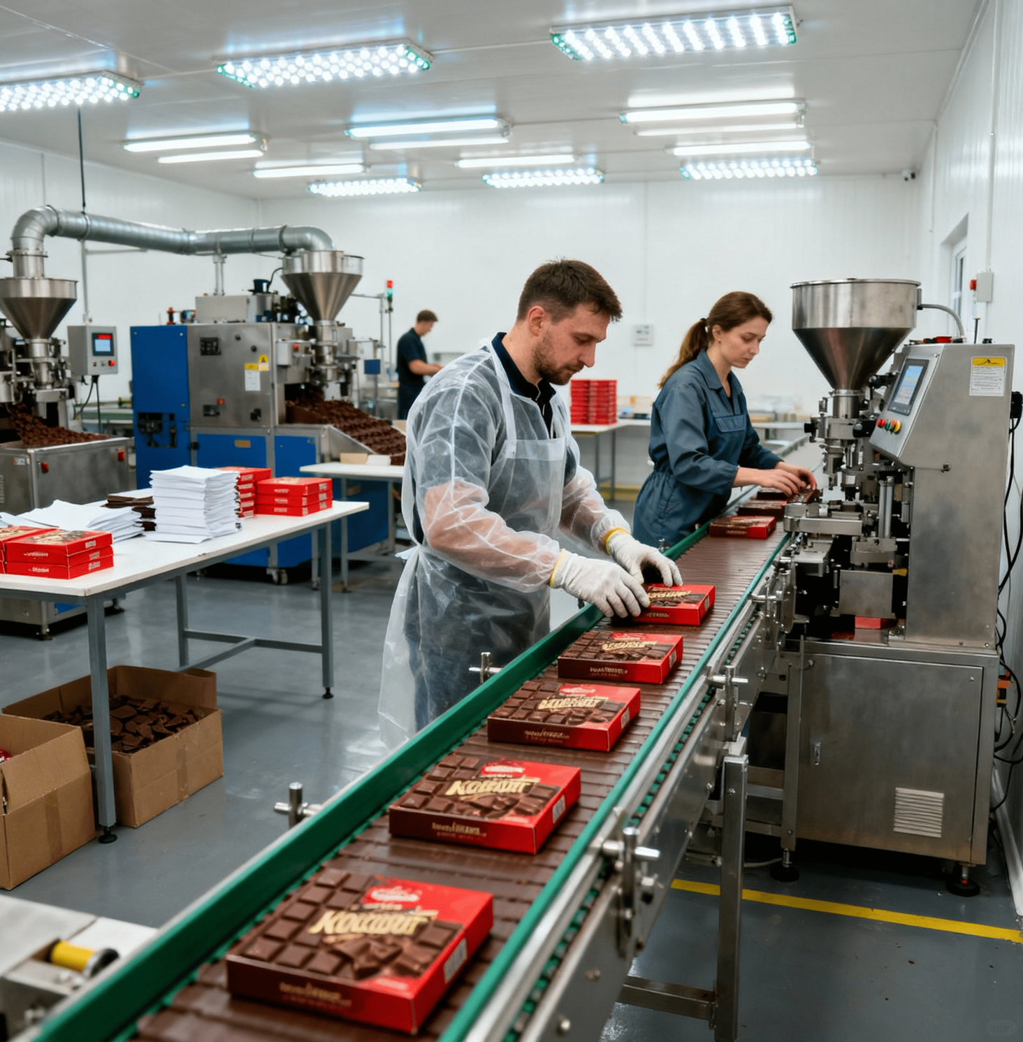 На шоколадную фабрику требуются мужчины и женщины для работы на производстве и упаковке.
