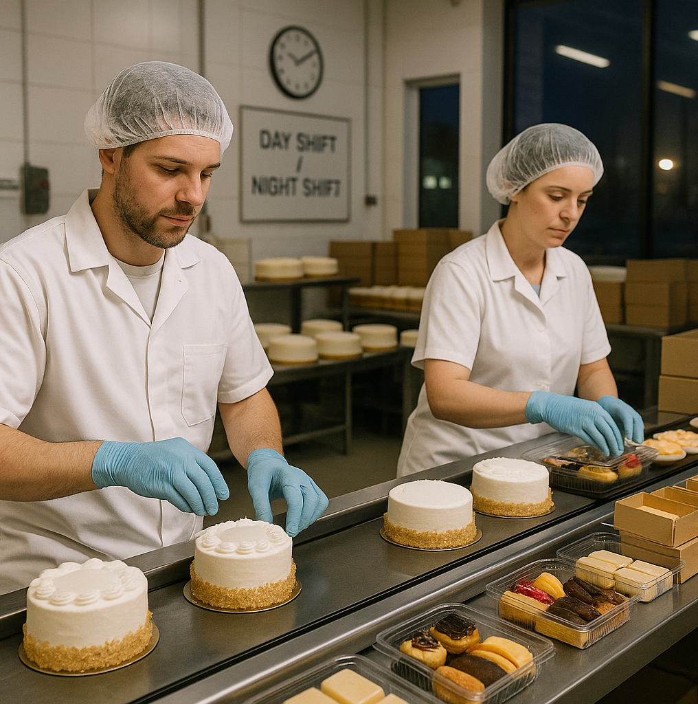 На производство и упакрвку тортов и пирожных приглашаем сотрудников до 55 лет.